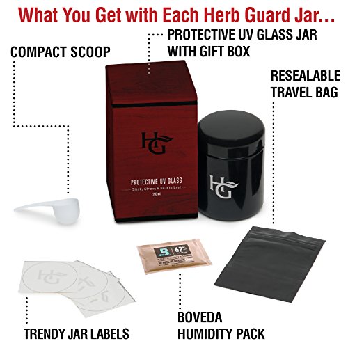 Studio : Herb Guard Publisher : Herb Guard Binding : Kitchen Product Description Enjoy a Premium Storage Experience At Herb Guard our goal isn't to provide you with just an average jar. We want to give our customers and experience and present a timeless jar designed for premium protection. Each jar comes with a certified Herb Guard cloth to remove any smudges, marks and dirt that accumulates on the glass surface.