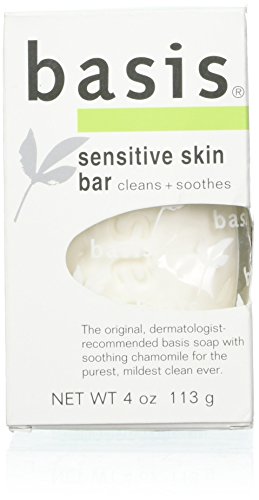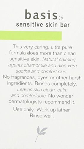 INDICATIONS:Basis Sensitive, Skin Bar SoapThe original, dermatologist-recommended basis soap with soothing chamomile for the purest, mildest clean ever. This very caring, ultra pure formula does more than clean sensitive skin. Natural calming agents chamomile and aloe vera soothe and comfort skin.Feature