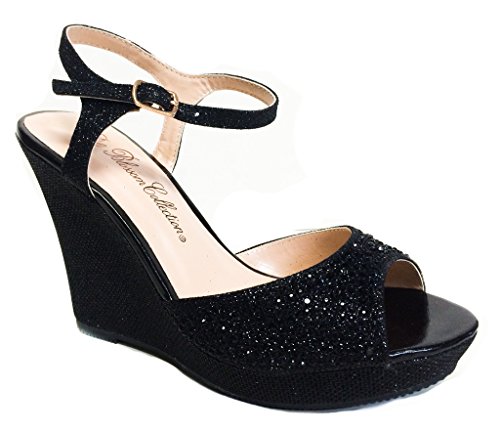 De Blossom Collection Lin-135 Sexy Strappy Glitter Rhinestone* Stiletto High Heel Platform Sandals