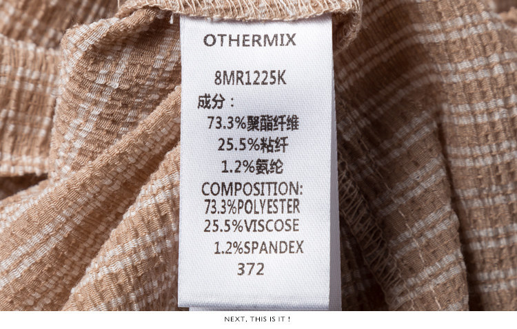 | 主 料:73.3%聚酯纤维 25.5%粘纤 1.2%氨纶颜 色:卡其,酒红 |