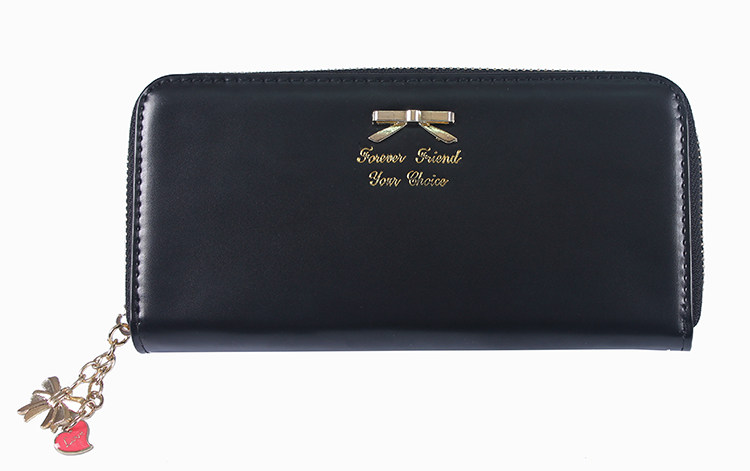 Product Name: Long shall bow unit zipper wallet Product Dimensions: Length 19.5 * 9.5 * 2.5CM Material: High quality PU lining with cross grain PU Product lining: BOVEIS Dacron cloth brand Products Hardware: hardware and zippers are made of high-grade light gold hardware Capacity: can hold eight cards, 10,000 yuan, 20 coins, a 5.5-inch phone