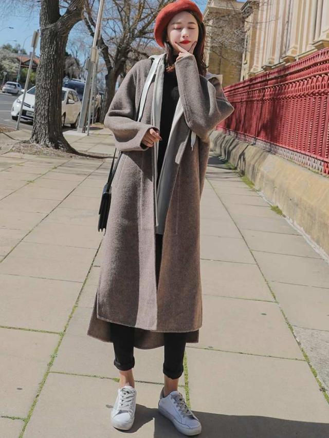 トレンド シンプル ロング丈 ガウン スタイリッシュ 秋冬 上品 エレガント S M L
