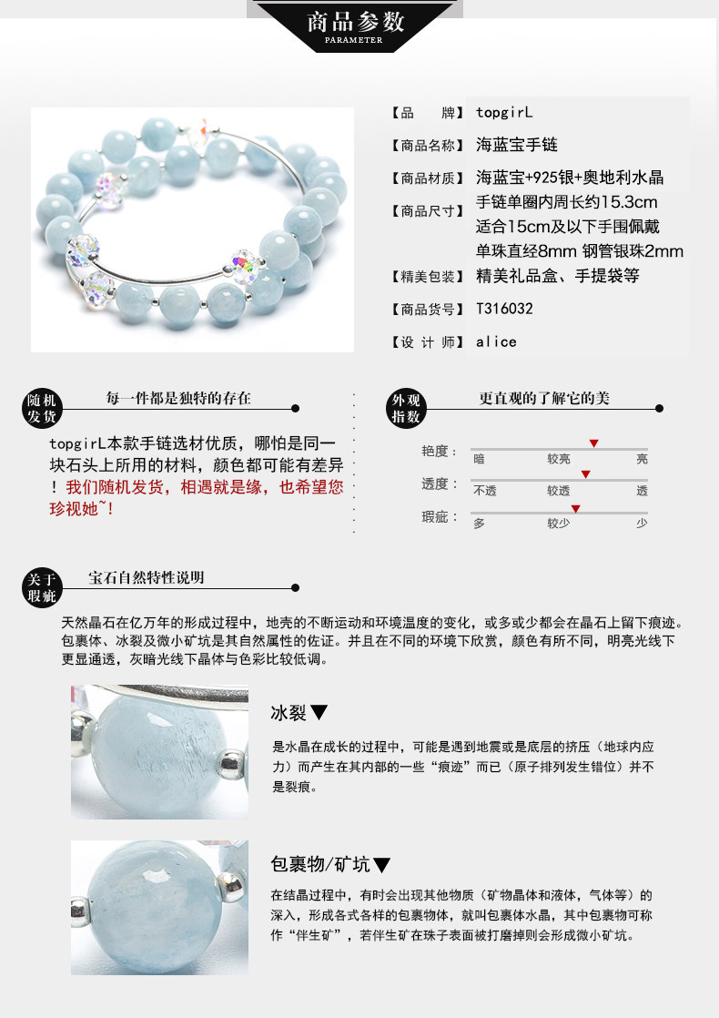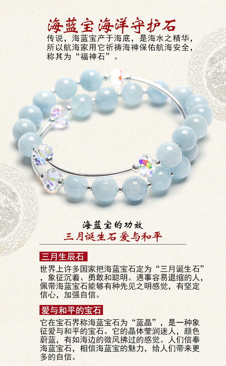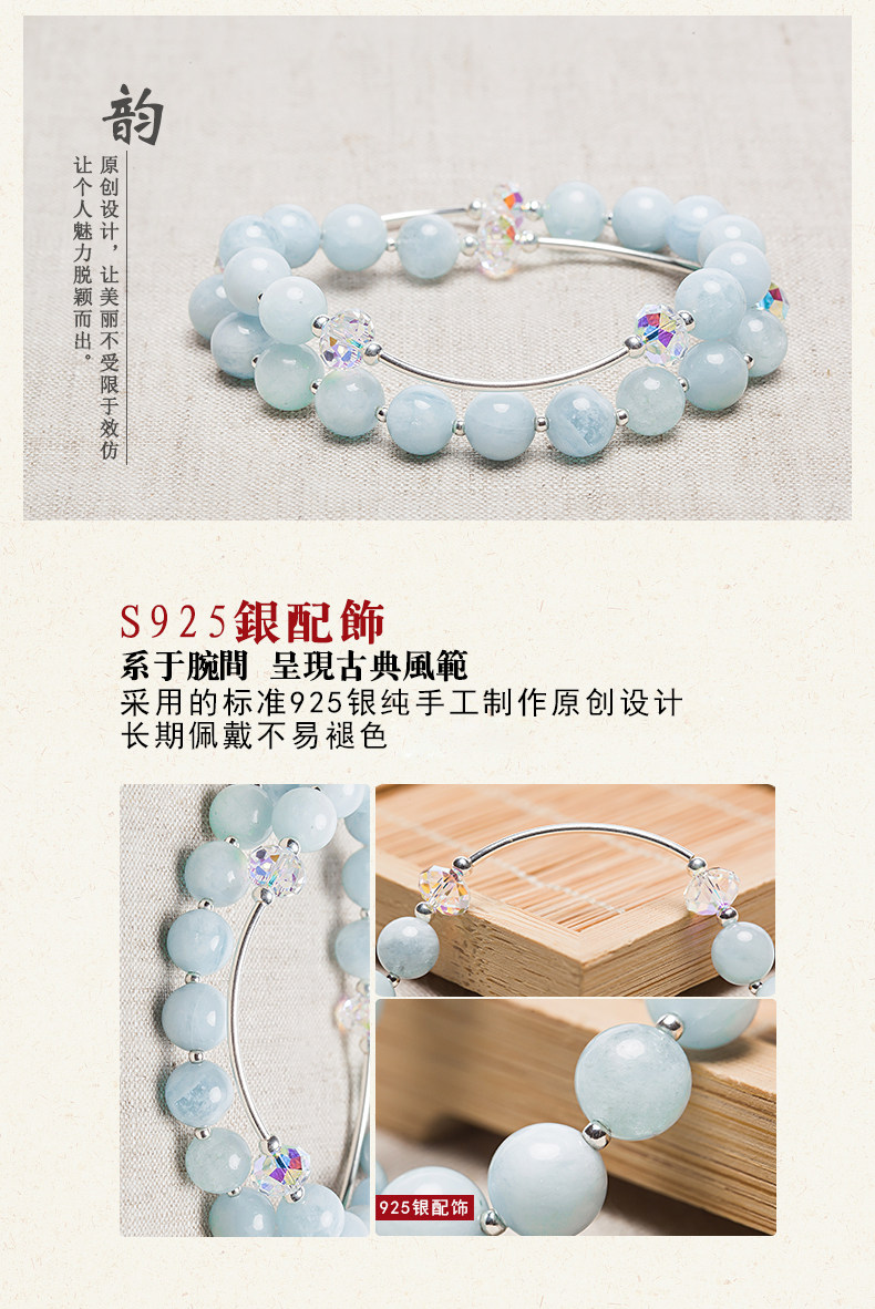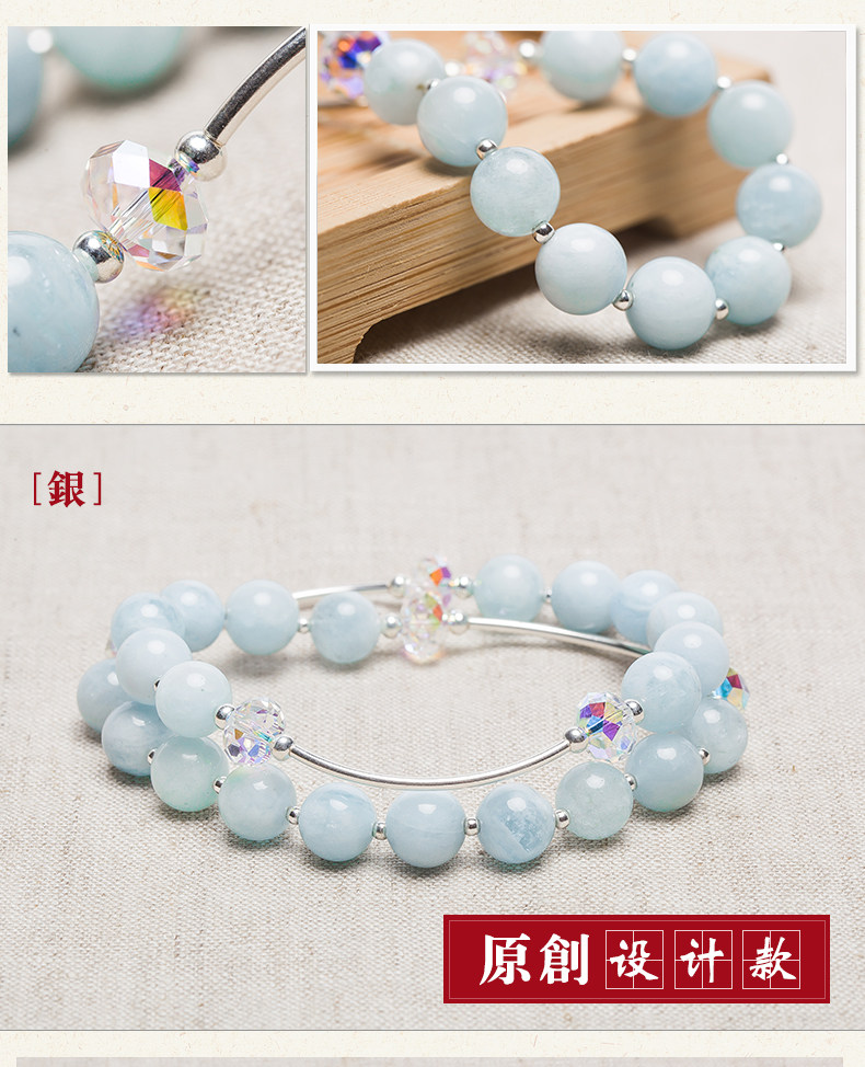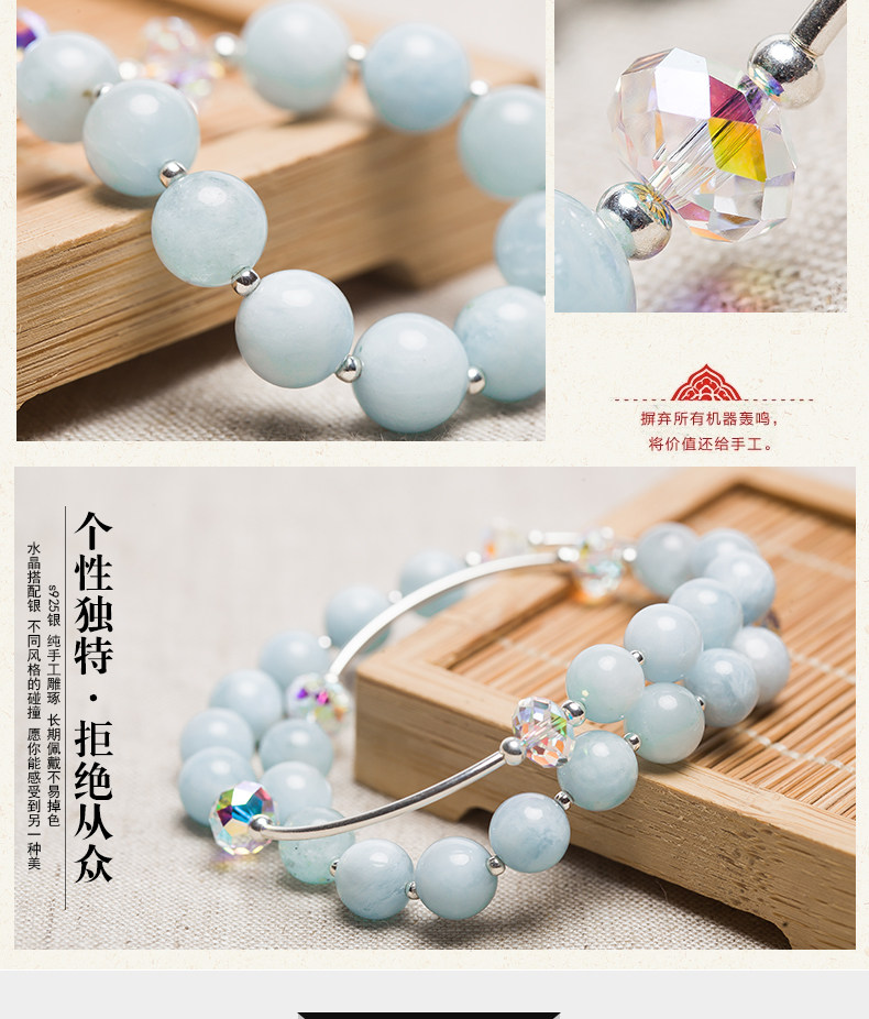 天然海蓝宝水晶手链女甜美简约925银饰品手串节日礼物