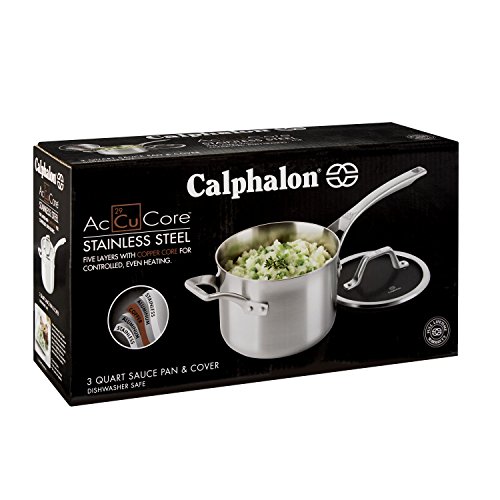 CALPHALON ACCUCORE STAINLESS STEEL SAUCE PAN WITH COVER, 3-QUART