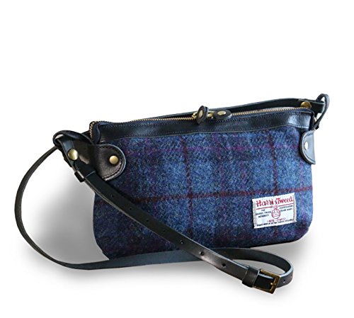 -. Title : Harris Tweed(ハリスツイード) ショルダー ハリスツイード&レザーのミニショルダーバッグ(ブルーグリーン×パープル)