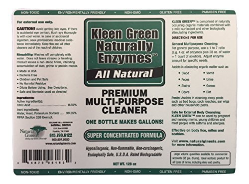 Studio : Natural Ginesis, LLC. Publisher : Natural Ginesis, LLC. Product Description Don't settle for imitations! Kleen Green is a unique organic blend of enzymes that is richer and stronger than the competition. Kleen Green is an enzyme cleaner and pest control product. Our revolutionary formula is designed to assist in removing and eliminating dirt, germs, bacteria, odors and pests including bed bugs, lice, crabs, fleas, mites and more, naturally! It is non-toxic, chemical-free, biodegradable, all-organic and hypoallergenic. Enzyme cleaners are now available to all consumers, but have been used widely in restaurant, health care, restaurant and institutional settings for many years, due to their low toxicity and superior cleaning properties. Kleen Green penetrates and emulsifies all types of grease and organic matter on all surfaces. It is an environmentally-friendly alternative to harsh cleaning chemicals and is highly effective for cleaning all surfaces including tile, walls, floors, carpets, rugs and upholstery. This unique and highly effective product is specifically designed to clean and biodegrade organic stains such as blood, vomit, urine, waste, food and other such difficult stains. Kleen Green attacks stains at first application then continues working to safely biodegrade the residual traces of these organic stains. Especially effective on hard-to-clean surfaces such as tile grouting, corners, cracks and crevices where germs colonize, plus carpets and furniture where removal of organic stains is difficult. As a pest control product, Kleen Green works better, quicker and safer than dangerous, synthetic pesticide poisons. Insects are made up of a high concentration of protein. When Kleen Green is introduced to an insect, the enzymes act and cause the insect to molt (shed its outer coating) prematurely, killing the insect. These enzymes are becoming widely accepted in the field of pest removal, because they leave no toxic residues and the enzymatic effect on the insect exoskeleton is quick and safe. 0
