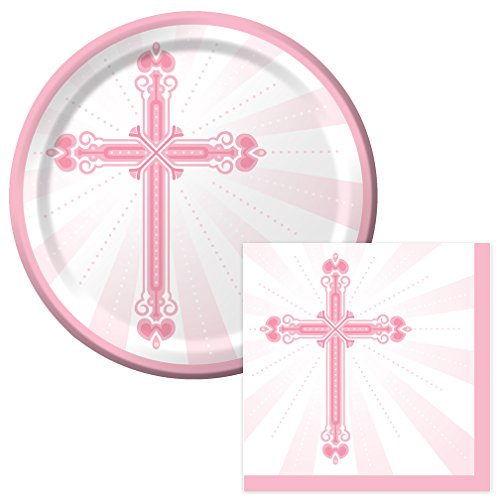 Pink Cross Blessings Lunch Napkins & Plates Party Kit for 8