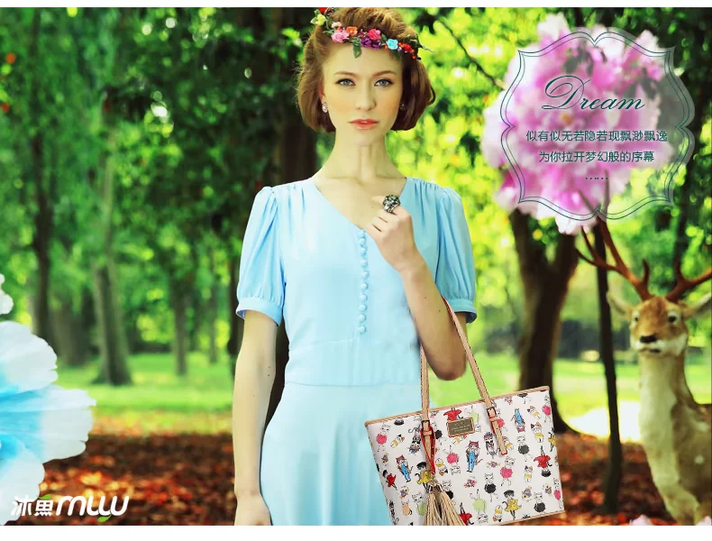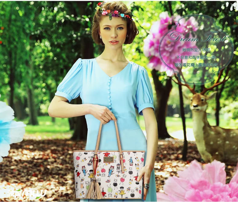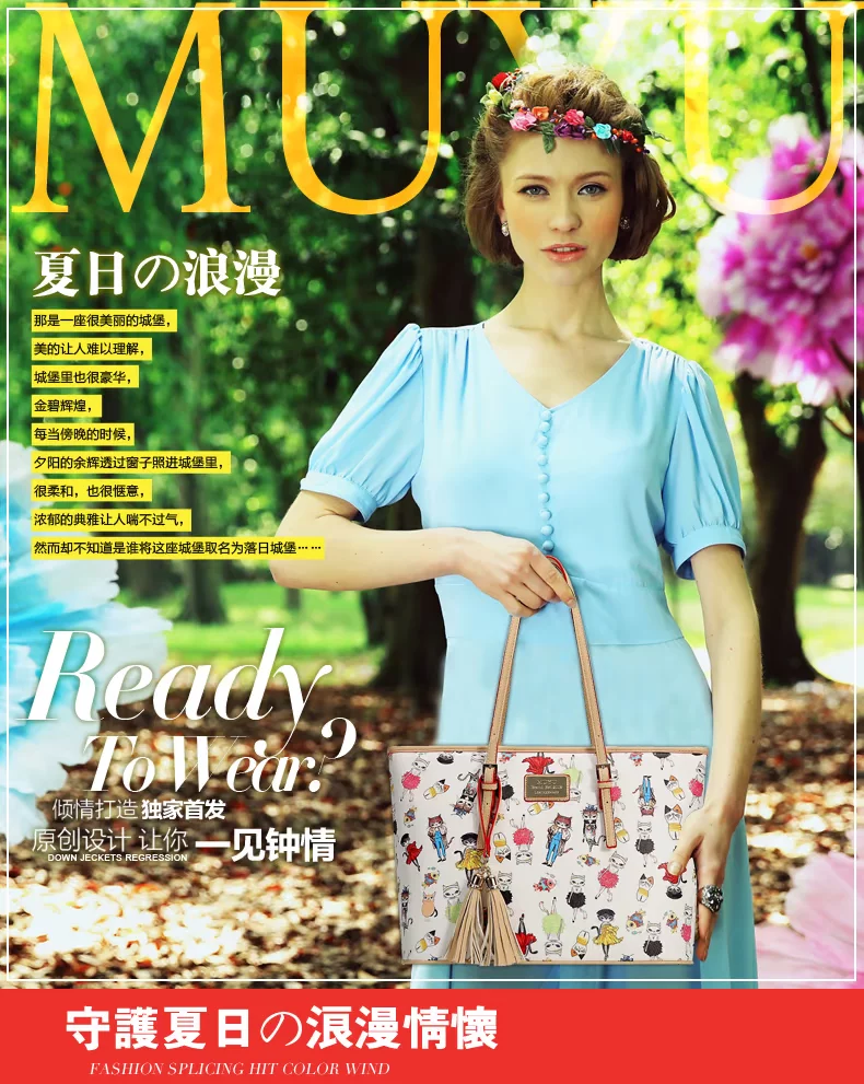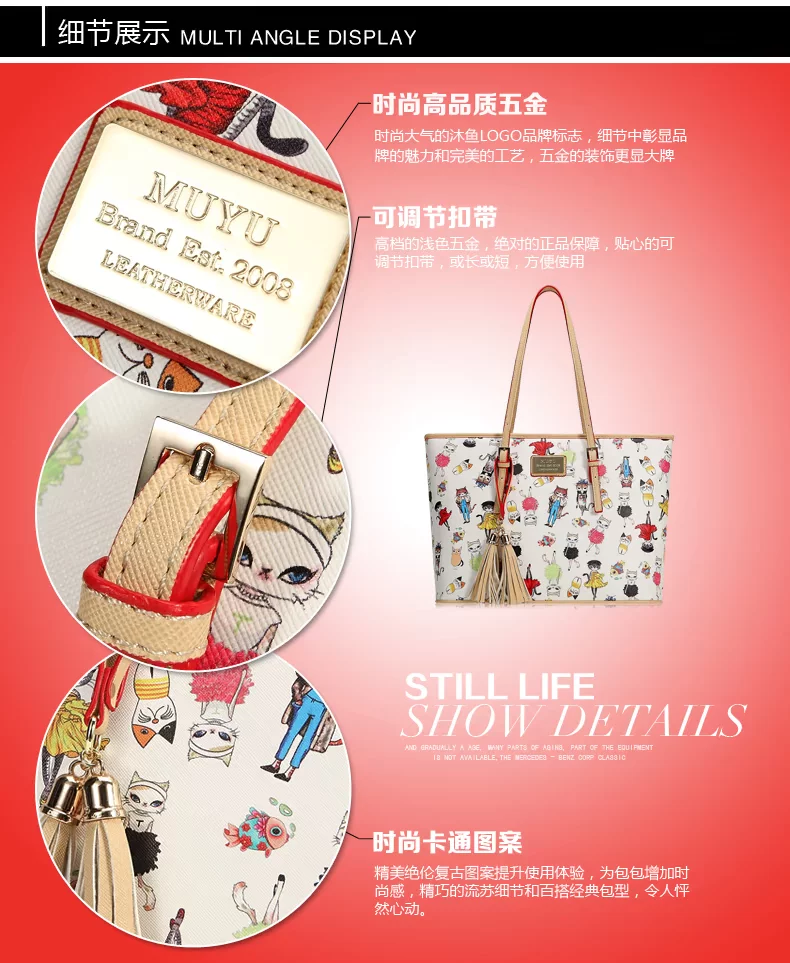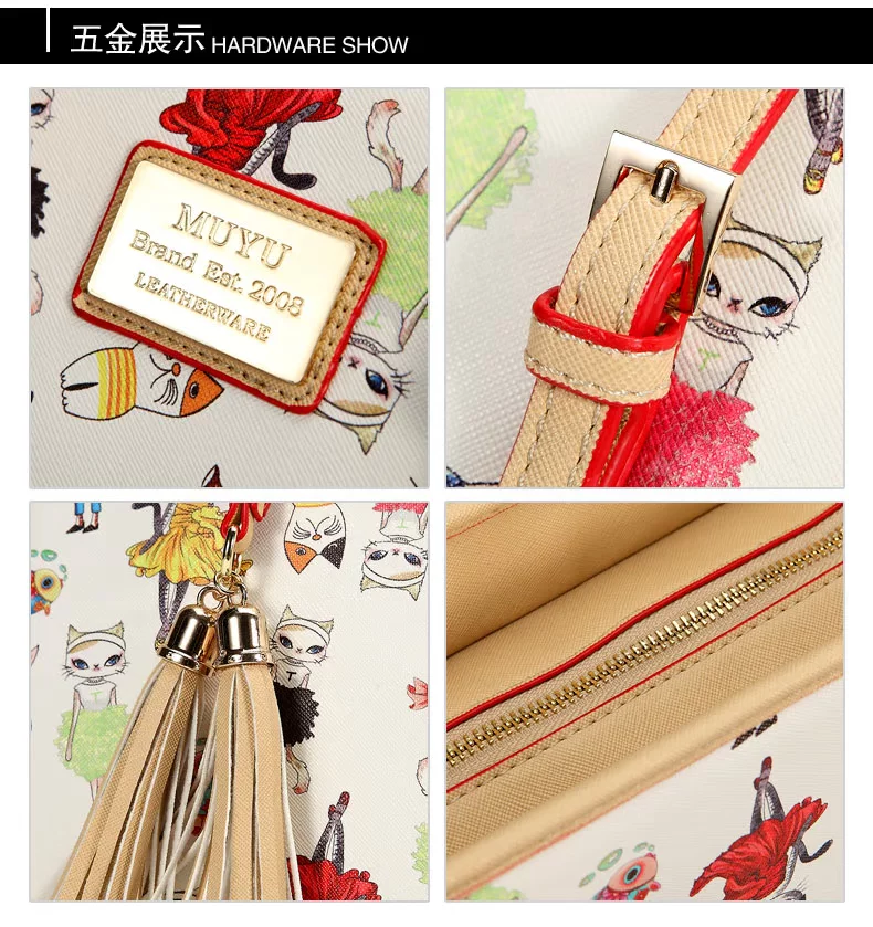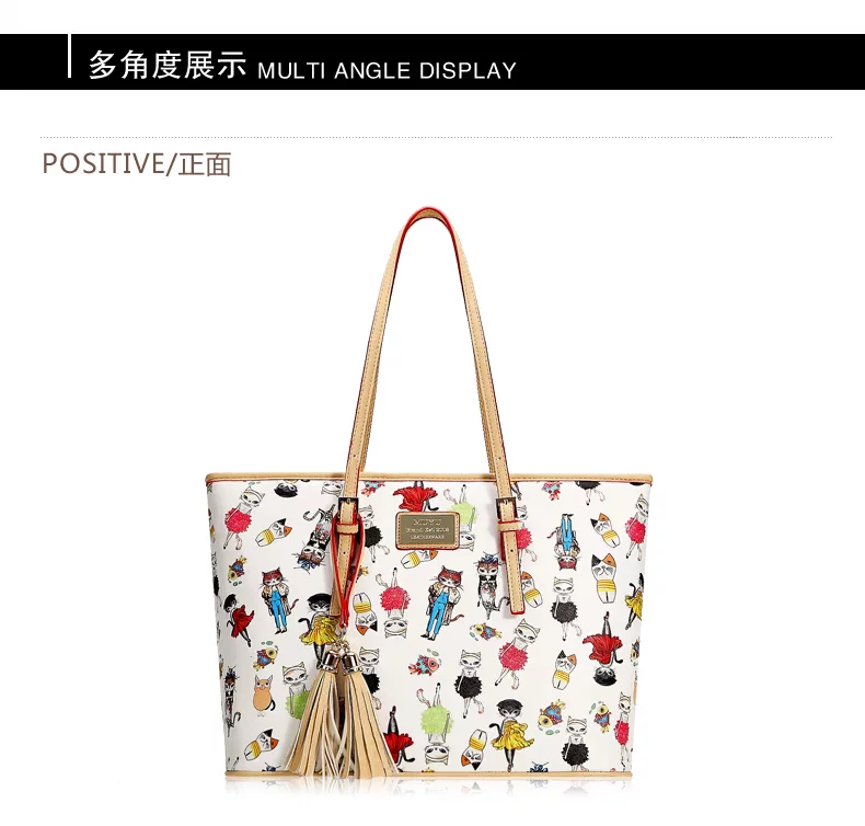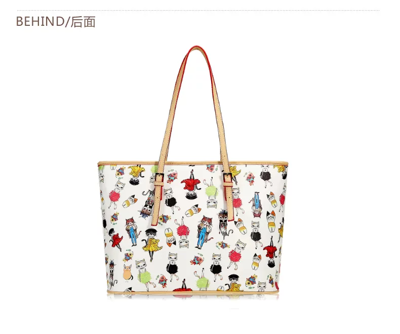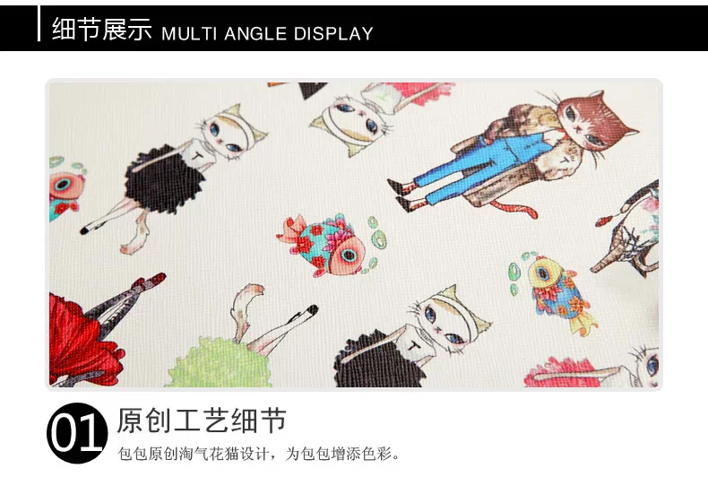 Style: Shoulder Bag Backpack: Shoulder hand Texture: PU Material Technology: soft surface Carry parts Type: The soft Closed way: zipper Internal Structure: zipper pocket cell phone pocket document bag Color: White naughty cat Whether the sandwich: None Bags Hardness: Soft Whether folding: No Condition: New Applicable scene: Leisure Bag size: medium (the longest side 30-50cm)