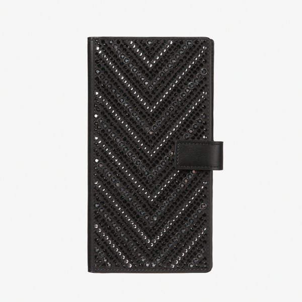 크리스마스 시즌 기획상품 핸드폰케이스 입니다. 크리스탈 스톤 4가지 사이즈와 3가지 색상을 사용하여 루즈앤라운지 시그니쳐인 V배열을 하였습니다. 빛과 조명을 반사하며 화려하게 빛이나 매우 럭셔리함이 느껴집니다. 또한, 내부에는 카드와 지폐를 수납할 수 있는 수납공간을 만들어 매우 실용적인 핸드폰 케이스 입니다. **크리스마스 기획 상품은 한정수량으로 진행합니다.