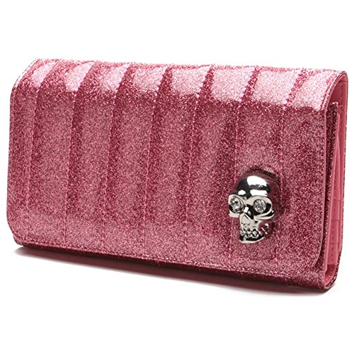 Studio : Lux De Ville Publisher : Lux De Ville Binding : Apparel Product Description Lady Vamp Wallet Pink Bubbly Sparkle By Lux De Ville. A wallet perfect for the ladies who love the beautiful yet dark side. Features tuck and roll stitching and over sized skull hardware with rhinestone eyes. Inside features heart photo windows, credit card holders, change pocket and snap closure to hold all your loot. Dimensions: 8" Long by 3.5" High. 0