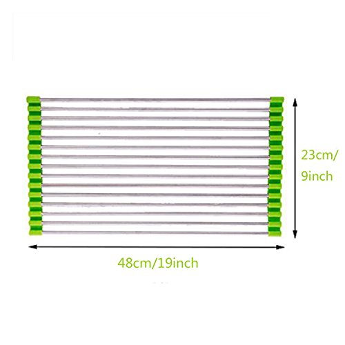 -. Brand : Xcellent Global -. Feature : Space-saving dish mat unrolls above an open sink for air-drying washed dishes Or fruits. / Water Drips Directly into Sink / Mat dries quickly and rolls back up for storage / Material: Stainless Steel and silicone / Dimensions: 23*48 cm -. Label : Xcellent Global -. Manufacturer : Xcellent Global -. ProductGroup : Kitchen -. ProductTypeName : KITCHEN -. Publisher : Xcellent Global -. Studio : Xcellent Global -. Title : Xcellent Global Stainless Steel Roll-Up Folding Drain Rack Colander Drying Tray, Silver, Size 23*48 cm M-HG064