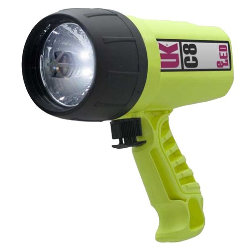 Studio : UK Publisher : UK Binding : Sports Product Description Awarded with both the Tester`s Choice Award and a Best Buy this UK C8 eLED Dive Light is a must have. This super bright eLED dive light is the first high-intensity scuba light that runs brighter underwater than it does on land. It's composed of one of the smallest and brightest 8 C-cell scuba dive lights on the market today.The UK C8 eLED dive light features Underwater Kinetics proprietary "through the lens" heat sink which offer scuba divers a super bright high-intensity dive light that maintains constant brightness throughout the battery's life and it's even brighter underwater than it's on land. It also features a unique optical design which unites two high intensity LEDs bulbs into one beam with twice the intensity. Without a doubt this UK LED dive light is perfect for seeking out unique marine life found under ledges. It also makes a good photo spotting light. Whatever your need may be this UK C8 eLED dive Light is promise to deliver. Other Underwater Kinetics C8 eLED dive light features: Power: 400 / 270 Lumens (high/low) Lamp: 2 High-intensity LEDs Distance: 494 / 403 ft (high/low) Burn Time: 14 /20 hr (high/low) Batteries: 8 C Cell Alkaline (included) Waterproof: 500 feet Weight: 36 oz Dive Lights 0