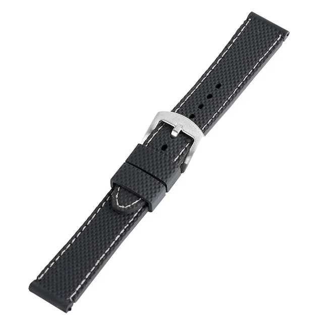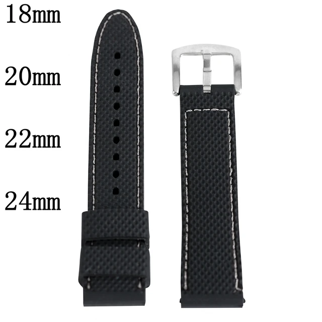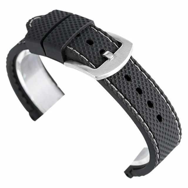 [해외] 실리콘 스포츠 시계 밴드 18 20 22 24 미리메터 블랙 스티치 방수 시계 스트랩 시계 실버 스틸 버클 Relojes 아저씨 2017 손목