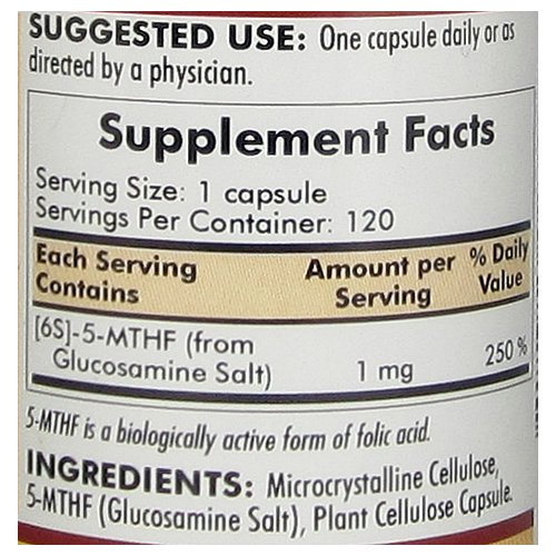-. Feature : The biologically active form of folic acid essential for good health, especially in pregnant and nursing women. / STORE IN A COOL DRY PLACE AND TIGHTLY CAPPED. KEEP OUT OF THE REACH OF CHILDREN. / Vitamins / Capsules / 120 ct