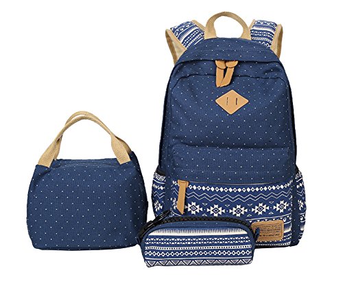 -. Title : Tonlen Kids Teens Girls Canvas School Backpack 3 Set with Lunch Box