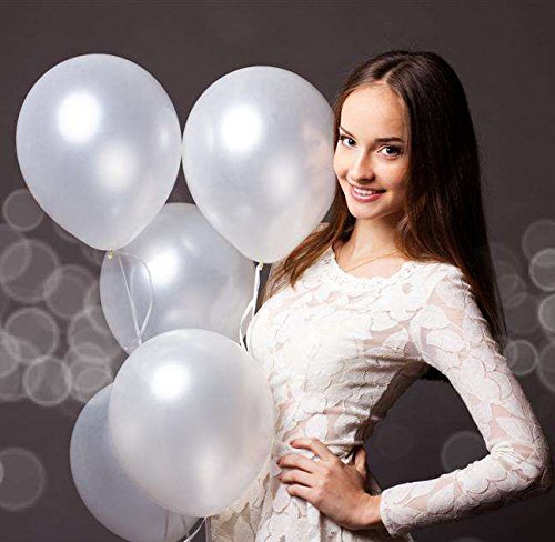 Features: Quantity: each package contains 100 pcs Size: diameter of inflated each balloons is 12 inches or 30 cm Wight: one latex balloon is 2.8 g Colors: pearlized White Material: balloons made with high quality natural rubber latex - It is biodegradable and eco-friendly