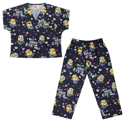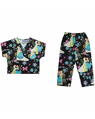 Kid's V-neck dolman sleeve top with chest pocket and matching elastic waist pant with back patch pocket. Brushed 65% Polyester / 35% Cotton Poplin. Tooniforms. Kid Scrubs.