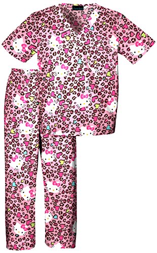 Tooniforms by Cherokee Kid's Unisex Hello Kitty Print Scrub Set Large Hello Kitty Hugs