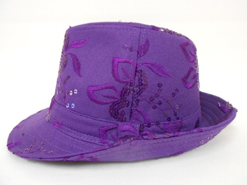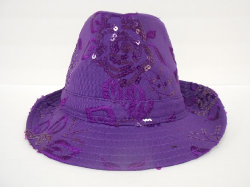 -. Binding : Apparel -. Brand : Florida Hat Company -. ClothingSize : One Size Fits Most -. Color : Purple -. Department : womens -. Feature : Sequin Floral Fedora / Red Hat Lady Society / Purple / One Size Fits Most -. ProductGroup : Apparel -. ProductTypeName : HAT -. Size : One Size Fits Most -. Title : Sequin Floral Fedora / Purple