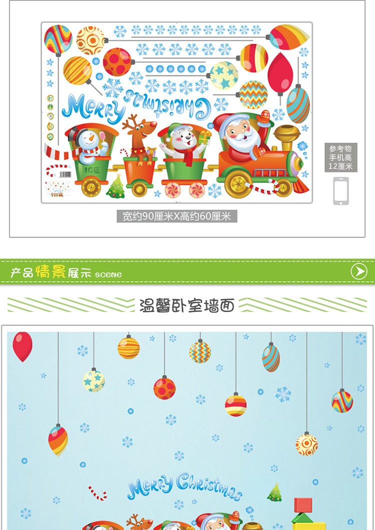 圣诞卡通火车店铺布置装饰品贴纸玻璃橱窗自粘墙纸贴画墙贴