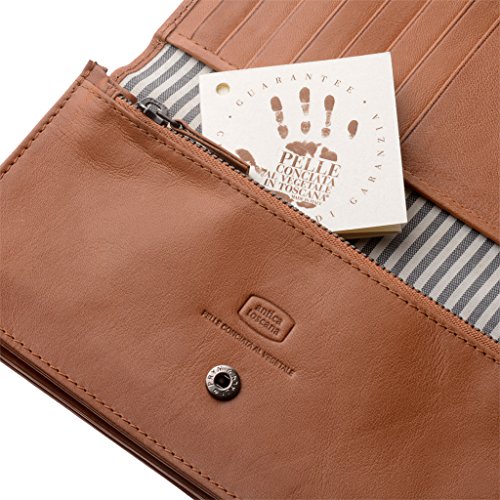 Brand:?Antica Toscana® Material:?Genuine Italian vegetable tanned leather, hand-dabbed Dimension (refer when wallet is closed):?17,5 x 10 x 2,5 cm Weight:?145 g Box:?Included Type:?Ladies Composition:?14 credit cards pockets, 1 inner pocket with zip, 2 compartments with gussets and 2 extra pockets Available colors: Black, Chestnut, Terracotta, Honey. All plain colour