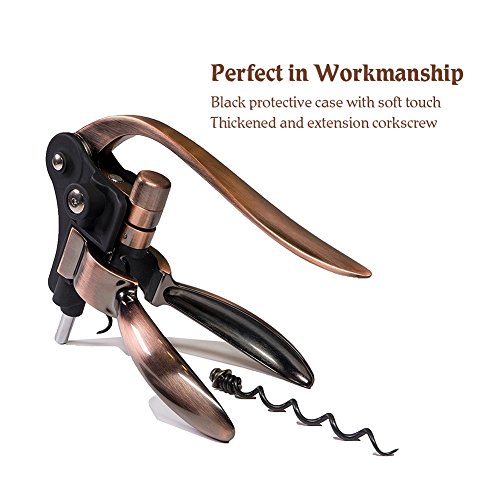 -. Feature : 1.Material: Zinc alloy material with plating, durable and attractive. and the design is accordance with human engineering; / 2.Structure: Design based on classic lever and grip, the legendary smooth lever action is based on the idea of mechanical advantage. As pressure is applied at one end of the lever handle, power is multiplied at the corkscrew, making it easier to open the bottle with one fluid motion; / 3.Including: 1* rabbit opener,1* replaceable worm,1*foil cutter; / 4.Method: Please read the instruction manual on the box before using it. The sharp worm can go into the cork when going down and pull the cork out in a second when going up; / 5.Warranty and Package: One year valid warranty, any quality problem, please contact with us by email promptly. Packaged in a classic black box for storage