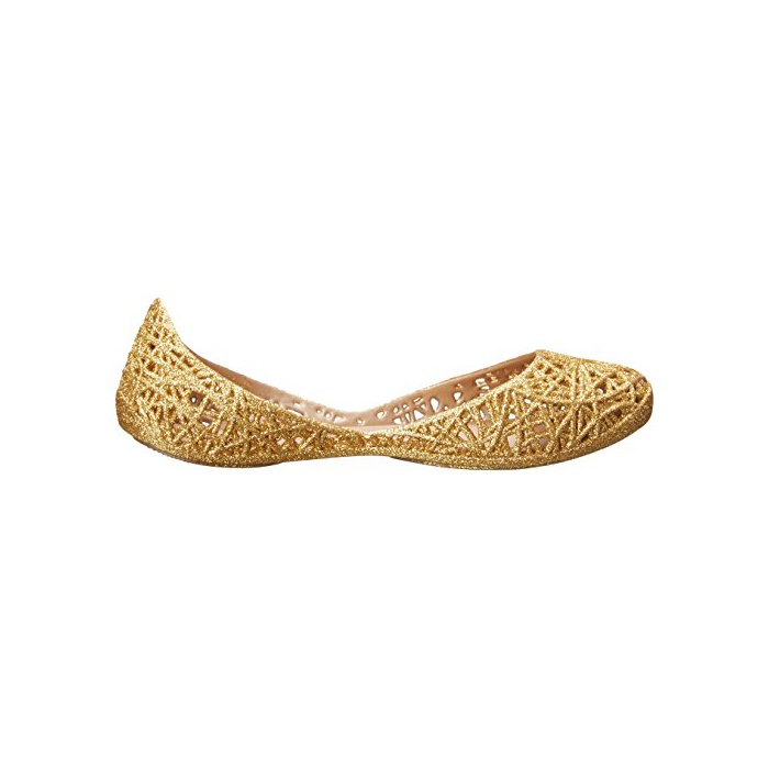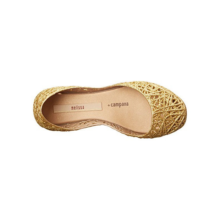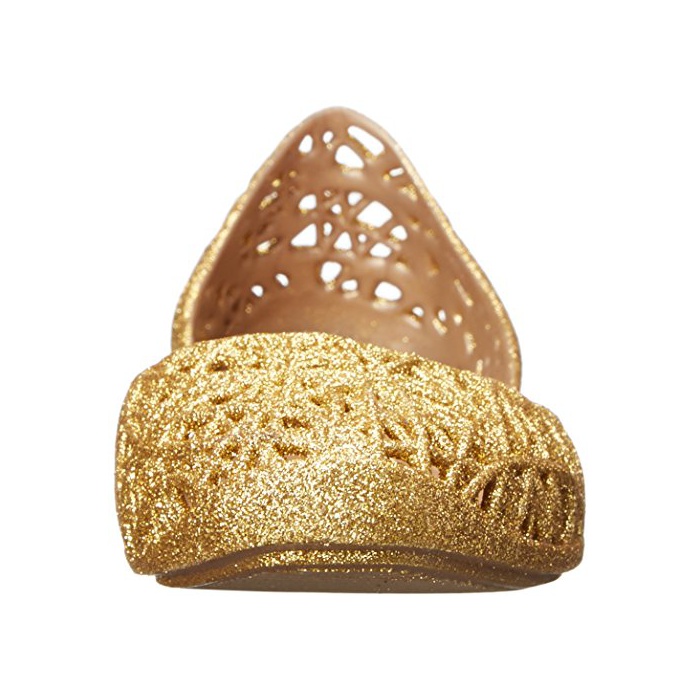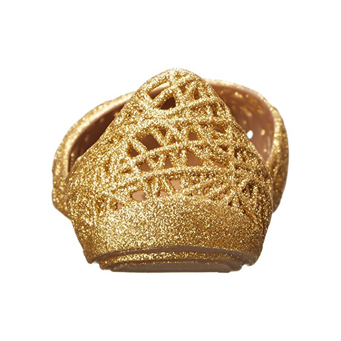 Jelly Mary Jane in intricate cut-out design featuring gold-tone fixtures at hook-and-loop strap