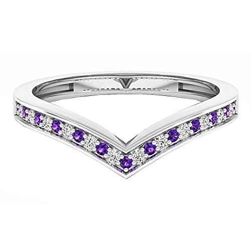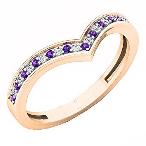 -. Binding : Jewelry -. Brand : DazzlingRock -. Department : womens -. Feature : Other ring sizes may be shipped sooner. Most rings can be resized. / Items is smaller than what appears in photo. Photo enlarged to show detail / Satisfaction Guaranteed. Return or exchange any order within 30 days. / All our diamonds are conflict free. / Color may varies from photo. -. Model : K5365-14K-P -. MPN : K5365-14K-P -. PartNumber : K5365-14K-P -. ProductGroup : Jewelry -. ProductTypeName : FASHIONRING -. Title : 14K Gold Round Amethyst & White Diamond Wedding Stackable Band Anniversary Guard Chevron Ring