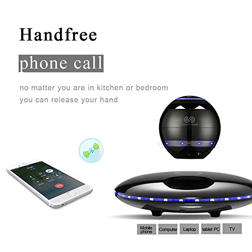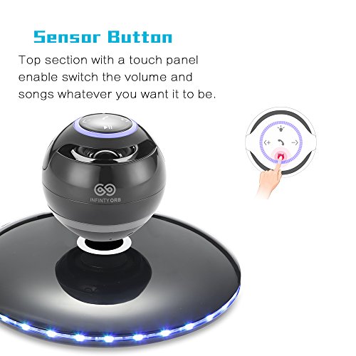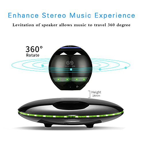 -. Binding : Electronics -. Brand : Infinity Orb -. Color : Black -. EAN : 0756155344475 -. Feature : Amazing LED Visual Effect -The base illuminates continuously different color LED lights. / The orb can be used as a standalone speaker without the base. / 3D Surround Effect - Special sound guide cone designed to offer a distinctive timbre. / Bluetooth 4.0 - Connecting with all Bluetooth-enabled devices stably and easily including iPhone, iPod, tablet, etc. within 10 meters wireless field. / A PERFECT GIFT for your family, friends and relatives -. Label : Infinity Orb -. Manufacturer : Infinity Orb -. Model : WB-46-3 -. PackageQuantity : 1 -. ProductGroup : Speakers -. ProductTypeName : PORTABLE_AUDIO -. Publisher : Infinity Orb -. Studio : Infinity Orb -. Title : Infinity Orb Magnetic Levitating Speaker Bluetooth 4.0 LED Flash Wireless Floating Speakers with Microphone and Touch Buttons (Black) -. UPC : 756155344475