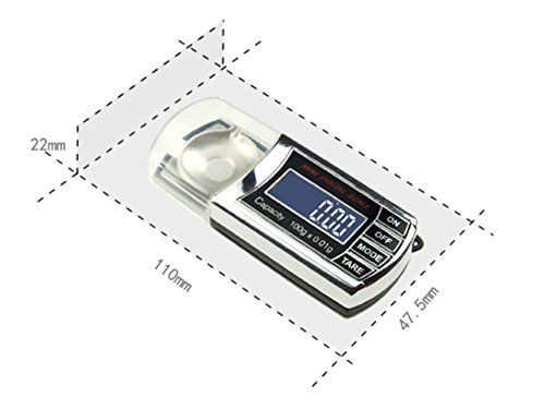 Weighs up to 100 grams in increments of 0.01 grams. The electronic high precision sensors guarantee you a precise professional weighing session.