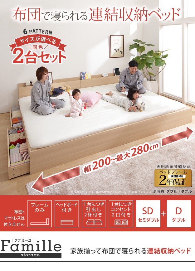 セット内容:セミダブルベッドフレームx1、ダブルベッドフレームx1