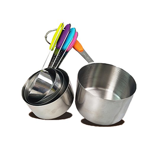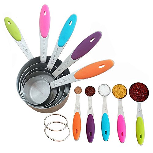 - NON-SLIP GRIP FOR SAFE HOLDING: No more burning your hands with scorching hot measuring cups and spoons. We have designed this meal prep measuring set to have anti-slip silicone handles for easy grip. Hold the cups without worrying about heat or cups slipping off your hands! Their colorful design will compliment every kitchen!