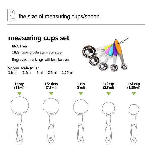 - COMPLETE SET OF 10: Includes 1/8 cup, 1/4 cup, 1/3 cup, 1/2 cup, 1 cup & 1/4 tsp, 1/2 tsp, 1 tsp, 1/2 tbsp, 1 tbsp, totally 10 sizes to meet all you needs.