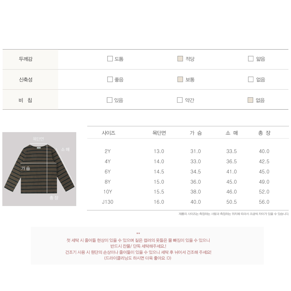 틀어짐을 최소화하기 위해 워싱과정을 거쳐 스트라이프의 틀어짐 또한 덜하답니다+_+