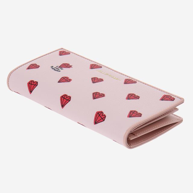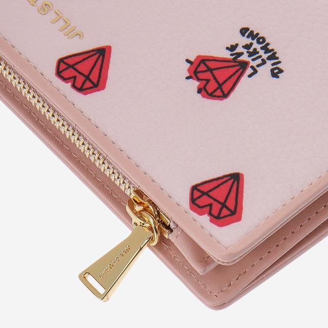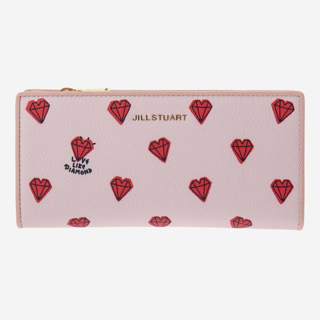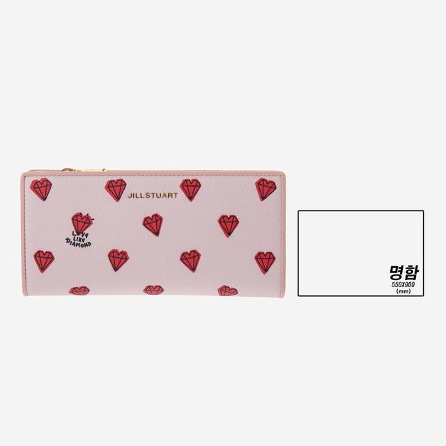 핑크 컬러의 질 스튜어트 하트 다이아몬드 패턴으로 귀여운 장지갑입니다.