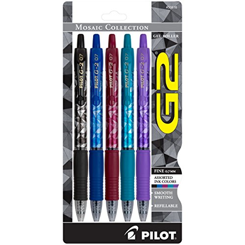 Pilot G2 Mosaic Collection Gel Roller Pens, Fine Point, Assorted Color Inks/Grips, 5-Pack (31676)