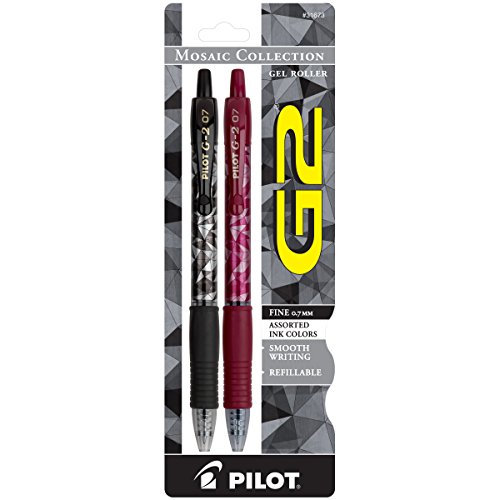 Discover writing perfection with G2... America's #1 selling Gel Ink Pen according to ACNielsen! With a contoured rubber grip for writing comfort, experience the dynamic gel ink formula that's smooth-writing and smear-proof. Retractable and refillable, G2 offers extreme value with longest lasting ink! And now, they're more beautiful than ever! Introducing the G2 Mosaic Collection. Smooth writing and long-lasting just like the original G2, but now enhanced with an elegant tonal mosaic-inspired pattern. Each pen has colored ink that matches the comfortable rubber grip on the pen, so you can always tell what color you are picking up.