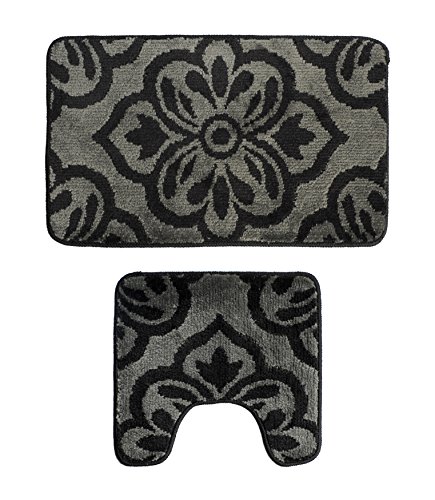 Y&K Decor Bathroom 2 Pieces Bath Rug Pedestal Mat Set Contour and bath mat Black Grey