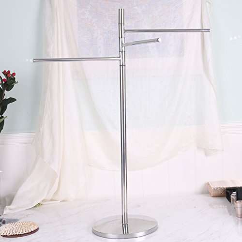 - TOWEL RACK WITH 3 BARS:3 Swivel arms keep bath towels separate for effective drying and can rotate 360 degrees.three Long arms length 12.2inch which can each hold a large bath towel or hand towels