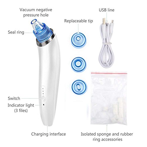 -. Title : Gasili Blackhead Remover, USB Rechargeable Blackhead Vacuum Suction Remover, Electric Skin Cleanser Blackhead Extractor Tool, Skin Pore Cleaner with 4 Replaceable Suction Heads (White)