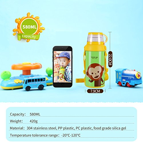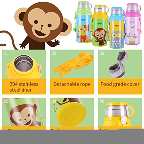 UPSTYLE Children Vacuum Insulated Stainless Steel Thermoses Water Bottle with Lovely Pattern Vacuum Cup Vacuum Flask Sport Bottle for Kids, 19.6 OZ (Yellow Monkey)