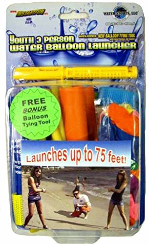 820259 Size: Small Features: -Hurtles balloons high into the sky across great expanses.-Drawback the water sling and let your balloon cut through the air.-Tie balloons in seconds flat with the nifty tool.-Perfect for picnics and pool parties. Includes: -Kit includes the 3 Person Balloon Launcher, 72 biodegradable balloons, Balloon Tying Tool and a Filling Nozzle. From the Manufacturer Revive the ancient art of hurtling balloons high into the sky across great expanses. Taking water battles to the next level, this heavy-duty launcher shells targets with a bombardment of water balloons. This launcher is perfect for team building activities and aquatic recreations. With a 3 person team, drawback the water sling and let your balloon cut through the air like an airplane. This kit includes the 3 Person Balloon Launcher, 72 biodegradable balloons, Balloon Tying Tool and a filling nozzle for a truly drenching water bombardment. In the midst of a water battle, tie balloons in seconds flat with this nifty tool. With slippery, wet fingers it can be hard to tie a water balloon, especially when your Hydro Zooka wielding opponent is on the prowl. To ensure your H20 ammo is replenished, consider purchasing the Stream Machine Balloon Refill Kit along with the 3 Person Balloon Launcher. Stream Machine LLC is well known for building leisure, pool and backyard marine products. From Water Cannons to balloon launchers, Stream Machine keeps you cool in the sizzling summer months and sports a line of water pistols and pool accessories. Perfect for picnics and pool parties, your whole family will enjoy Water Sport's volleyballs and wrist launchers. Whether at the beach, in your pool or in the backyard, you will find what you need at an affordable price. We appreciate your interest and commitment to our products. 0