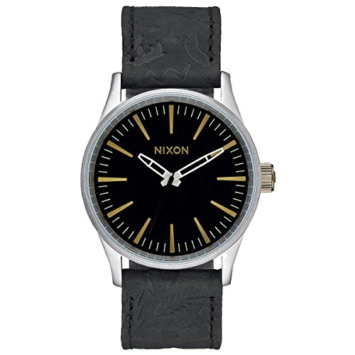 -. Binding : Watch -. Brand : NIXON -. Color : Black/Brass -. Department : mens -. EAN : 0882902863811 -. Feature : Miyota Japanese quartz 3 hand movement / 38mm, 100 meter/10 ATM custom stainless steel / Japanese-quartz Movement / Case Diameter: 38mm / Water Resistant To 100m (330ft): In General, Suitable for Swimming and Snorkeling, but not Diving -. IsAdultProduct : 0 -. Label : Nixon Inc. -. Manufacturer : Nixon Inc. -. Model : A3772222-00 -. MPN : A3772222-00 -. NumberOfItems : 1 -. PackageQuantity : 1 -. PartNumber : A3772222-00 -. ProductGroup : Watch -. ProductTypeName : WATCH -. Publisher : Nixon Inc. -. Size : One Size -. Studio : Nixon Inc. -. Title : Nixon Men's A3772222-00 Sentry 38 Leather Analog Display Japanese Quartz Black Watch -. UPC : 882902863811