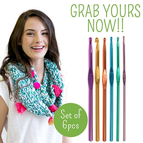 Mom's Aluminum Crochet Hook Set | 6 Pcs Longer Aluminum Crochet Hooks for Knit Craft Needle Weave Yarn | Comfortable and Lightweight | Various Size with Plastic Pouch Included | Various Color | 54.8