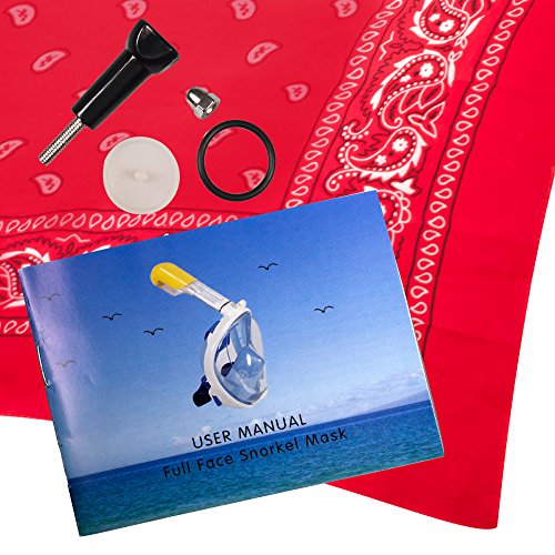 Full Face Snorkel Mask by Manokdala 180 ° Panoramic Scuba Diving Snorkeling Set Anti-Fog, Anti-leak Technology for Man & Woman, Waterproof Phone Case, Hand Fins & Red Cotton Bandage
