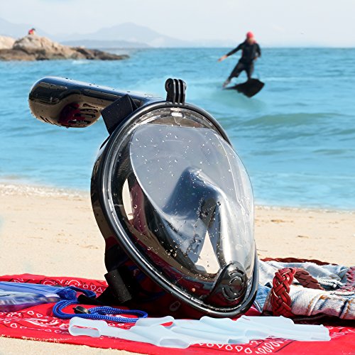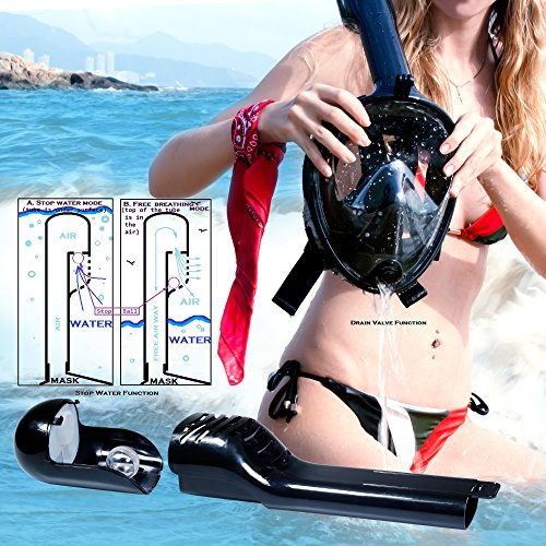 FORGET ABOUT FOGGED LENS - ANTI-FOG Technology - Our Full Face Snorkel Mask has anti-condensation and anti-fog coating. It's a new technology that prevents the collection of liquid on the lens. ANTI-LEAK Technology - excellent waterproof (The silicone around the lens perfectly prevents the ingresses of fresh and sea water inside the mask).