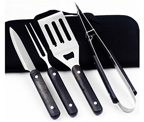 VolksRose Premium 4 Pieces Stainless Steel BBQ Set with Portable Fabric Storage Case - Heavy Duty Professional Outdoor Barbecue Grill Tool Accessories Kit - Perfect Christmas Gifts Idea