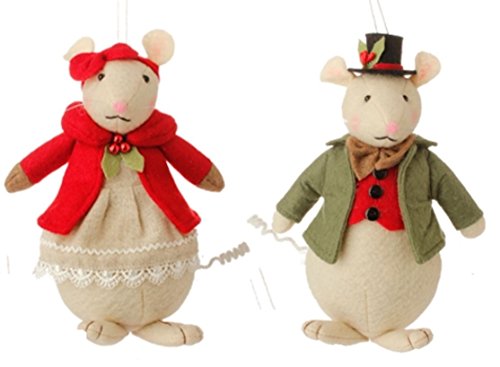 Christmas 7" Mouse Couple Ornaments PAIR in Gift Box! (Green Coat/Red Bow (Couple A))