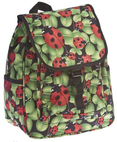 Made from durable 600 Denier Polyester fabric. This bag will handle a lot of use. Great junior sized backpack for school, camping, overnight, work and more! If you are fashion minded, many even utilize this backpack as a purse. Vibrant color dyed process make this ladybug print backpack look bright, crisp. No question, you will get plenty of compliments carrying it.