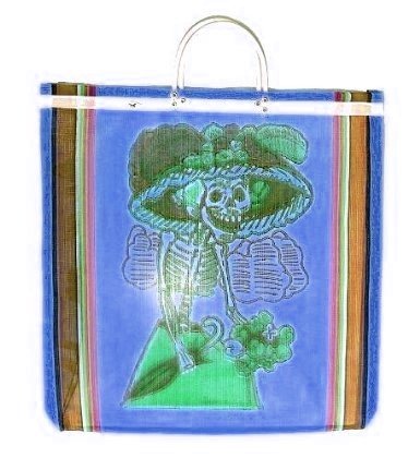 Day of the Dead Skeleton Mexican Mesh Market Bag (Blue)